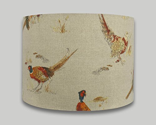 Description : Pheasant drum lampshade available in 20cm 25cm 30cm 35cm 40cm diameter with a range of depths in each size. This lampshade can be made to fit either a ceiling pendant or a table/standard/floor lamp, please choose the size and fitting you require when ordering. If you would like to receive a sample of this fabric before ordering please message us.