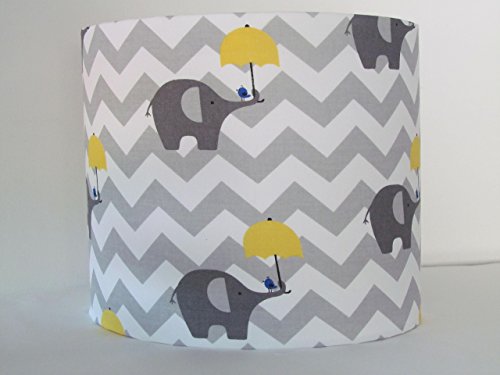 Description : Listed here is a handmade fabric drum lampshade / lightshade with an elephant and umbrella design in a yellow and grey colourway. Also available in pink and grey. Sizes available: Diameter 20 cm wide x 20 cm deep Diameter 25 cm wide x 23 cm deep Diameter 30 cm wide x 24 cm deep Diameter 35 cm wide x 24 cm deep Diameter 40 cm wide x 25 cm deep Can be used with a lamp base or a ceiling pendant. All shades are handmade and each one is completely unique. 20 cm - perfect for bedside tables or small room as a ceiling shade 25 cm - a little in between! Will suit medium lamps and medium sized rooms as a ceiling shade 30 cm - by far the most popular. Suitable for most table lamps / floor lamps and as a ceiling shade in any size room 35 cm - suitable for larger table / floor lamps and as a ceiling shade in medium / large rooms 40 cm - makes a real statement. Suitable for large floor lamps and as a ceiling shade in larger rooms Made by (me) using professional materials including flame retardant PVC that meets UK standards. Supplied with a European converter ring and low energy bulbs recommended. Shades will be made and sent via Royal Mail 48 hour service.